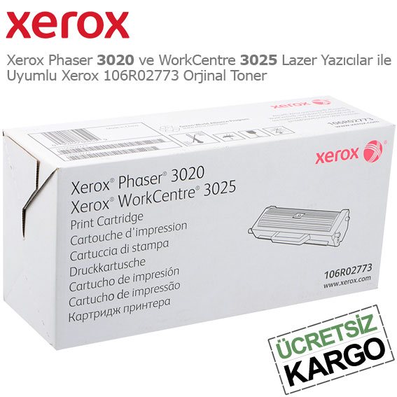 Xerox 106R02773 Orjinal Toner, Xerox Phaser 3020 ve WorkCentre 3025 serisi yazıcılarla tam uyumlu, 1.500 sayfa baskı kapasiteli siyah toner kartuşudur. Orijinal Xerox kalitesiyle belgelerinizde profesyonel sonuçlar elde etmenizi sağlar.
